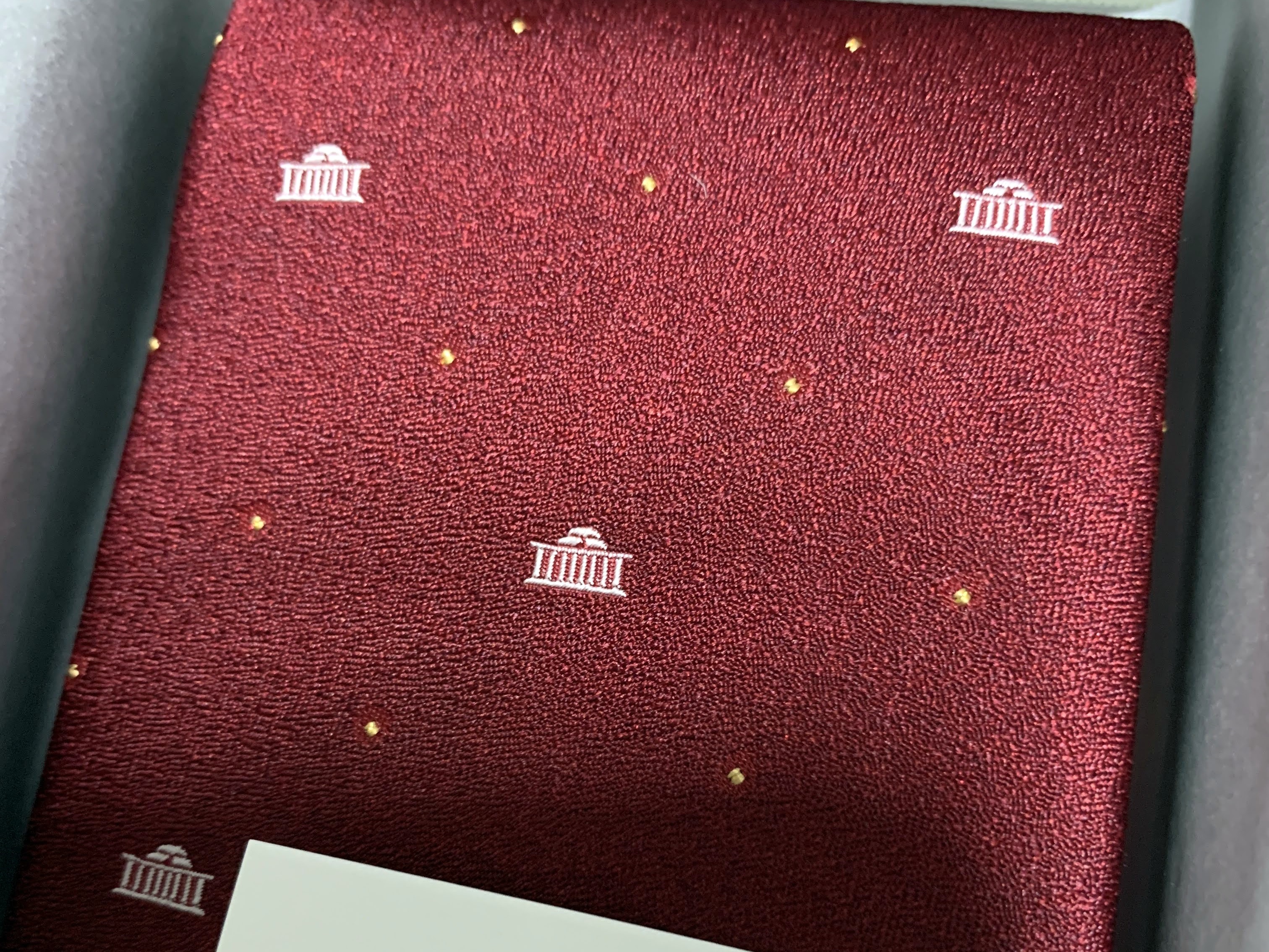 패키지 여행을 하다보면, 지나가다가 살까말까 고민하게 만드는 물건이 있다. 혹시 다음에 살 기회가 있겠지 하고 지나치고 나면, 나중에서야 그 물건을 다시 살 기회는 없다는 것을 깨닫게 된다. 언제 국회에 올 일이 있겠나 싶어서 계약종료를 며칠 앞둔 언젠가 기념품점에 가서 넥타이 하나를 샀다. 넥타이는 남색과 붉은 색 두 종류가 있었는데, 남색 넥타이는 많아서 붉은 색으로 샀다.