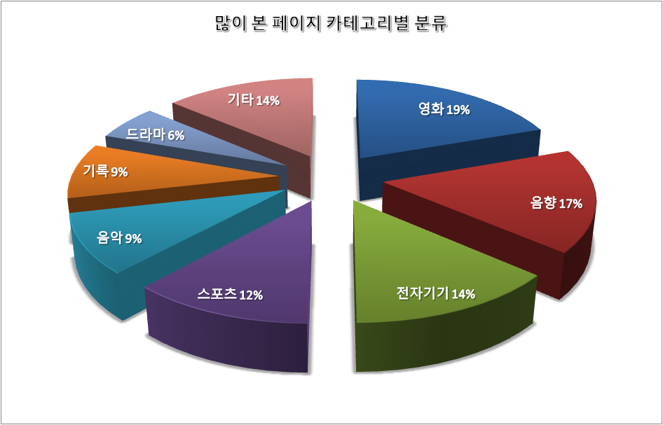 전자기기나 영화 쪽 검색유입이 상당한 걸로 봐서 블로그 시장에서 가장 잘팔리는 범주는 전자기기 리뷰나 영화 리뷰 같은 종류가 아닐까 생각하고 있다. 의외로 인상적인 부분은 기록학 범주다. 기록학 범주는 페이지당 조회수로 따지면 전자기기나 영화 다음으로 많다. 앞으로 어떤 방향으로 생각을 많이 해봐야 할지, 블로그에 글을 남겨야 할지 좋은 지표로 활용할 수 있을 듯 하다. (정치나 야구 이야기는 좀 줄이는 방향으로...)