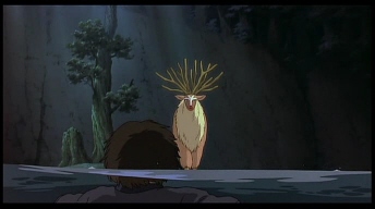 감독은 바로 그 생명의 소중함을 얘기하고 싶었던 거 같아. 사슴신은 생명을 관장하는 신이야. 숲에 살면서 사슴의 몸통에 원숭이 얼굴을 하고 살아가지. (이 생김새 자체도 공존을 얘기하고 있어. 숲을 상징하는 사슴의 몸통에 인간을 상징하는 원숭이 얼굴. 그것들이 공존하고 있는 형태가 바로 사슴신의 모습이지.)